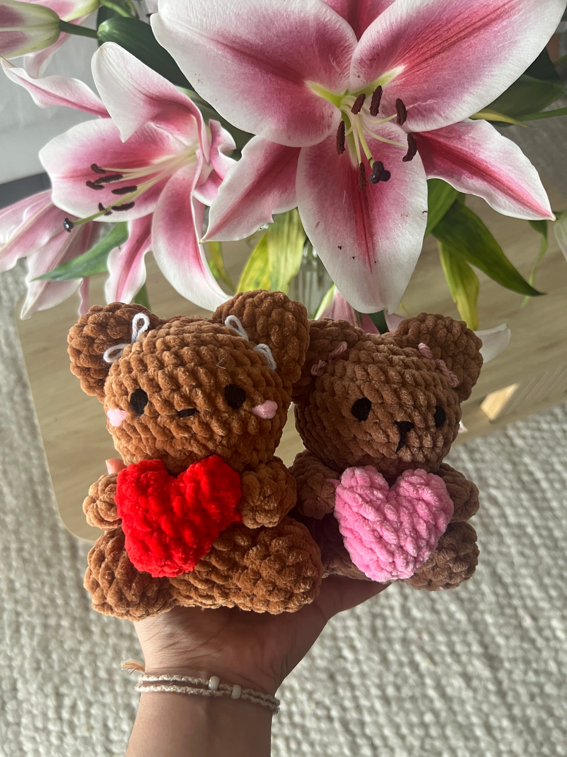 Si vous choisissez l'ourson personnalisé n’hésitez pas à m’écrire en commentaire les couleurs souhaitées.